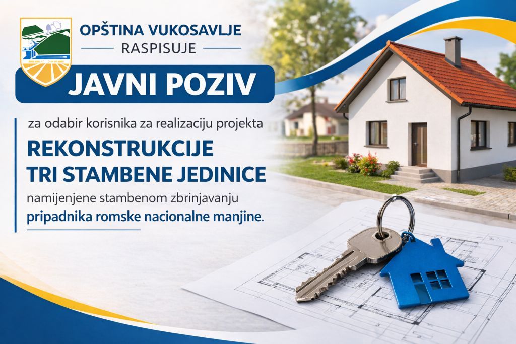 Opština Vukosavlje raspisuje Javni poziv za odabir korisnika za realizaciju projekta rekonstrukcije tri stambene jedinice namijenjene stambenom zbrinjavanju pripadnika romske nacionalne manjine.
